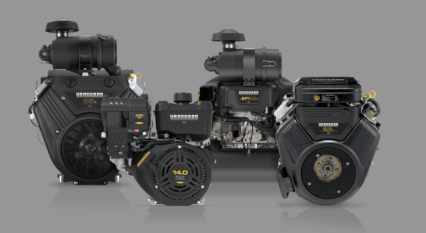 The Vanguard engine range from Briggs & Stratton is a line of commercial-grade, air-cooled petrol engines, available in both single-cylinder and V-Twin configurations with horizontal and vertical shaft options.